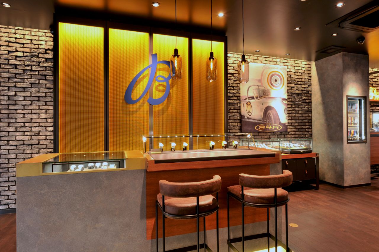 奥へ歩みを進めるごとにブライトリングの世界観へ入り込んでいける奥行きのあるワンフロアの構成になりました。