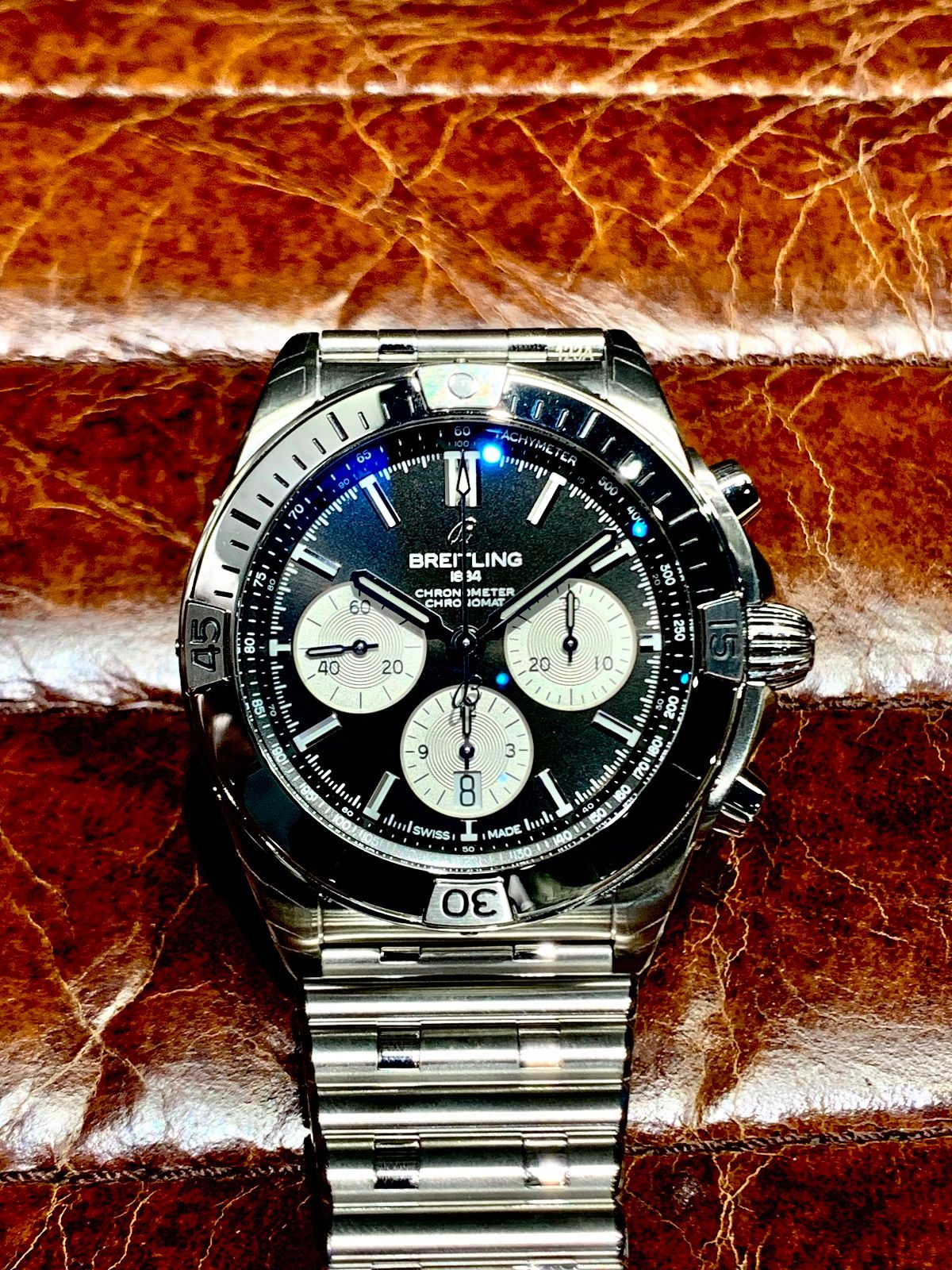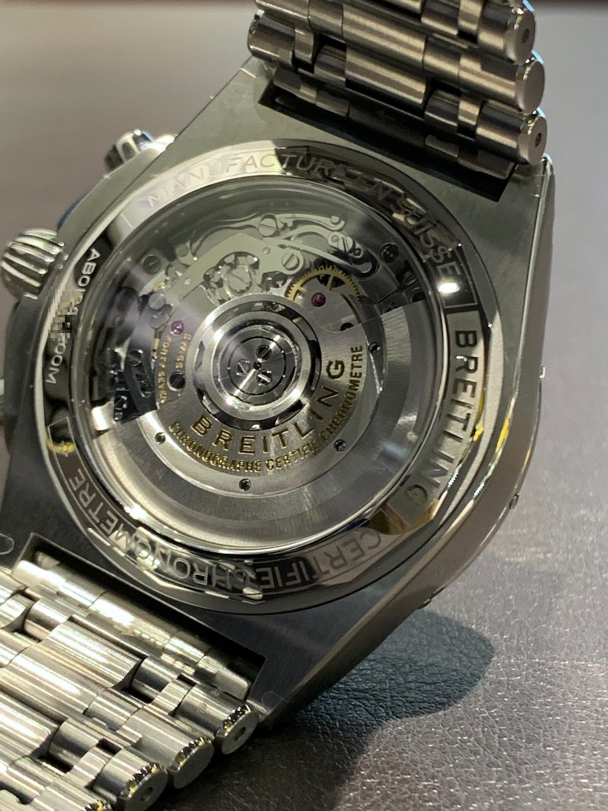 ムーブメントはブライトリング01マニュファクチュールなので、時刻も正確・日付変更禁止時間帯もなし!