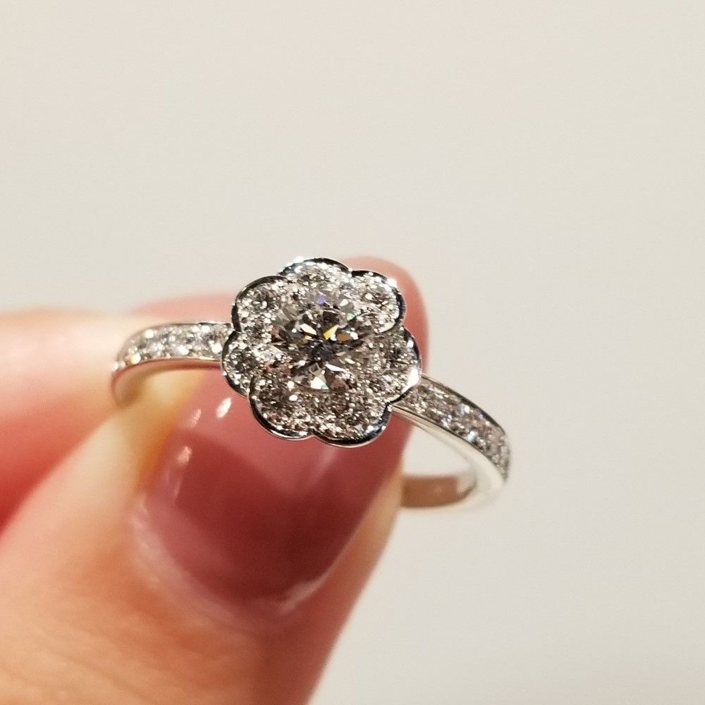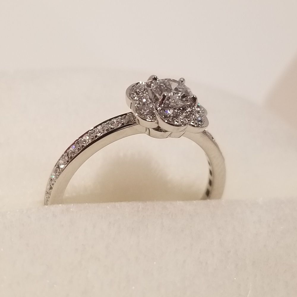 取り囲むように小さなダイヤモンドが留められ