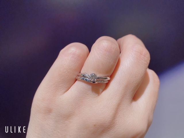 セットリングのエンゲージリングを重ねると、