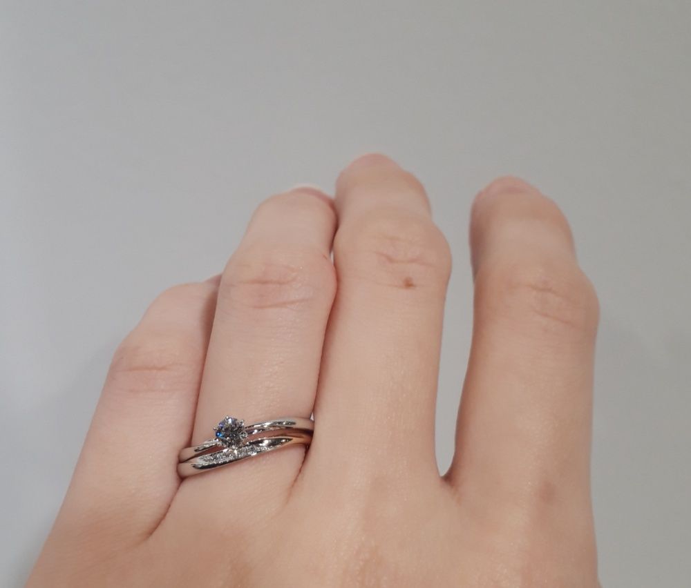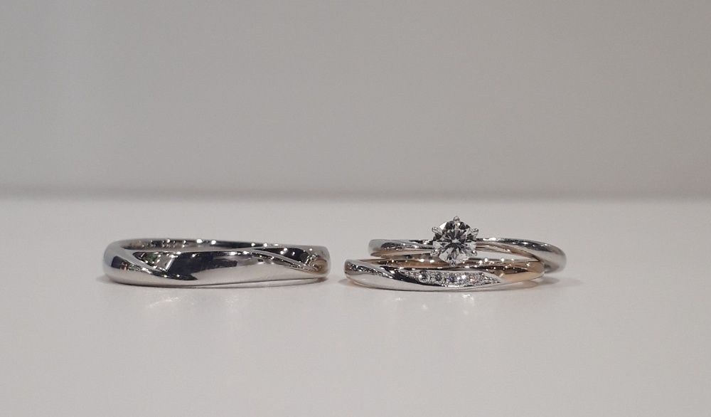 セットリングである雪佳景のご結婚指輪との重ね着けも素敵です☆