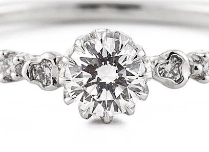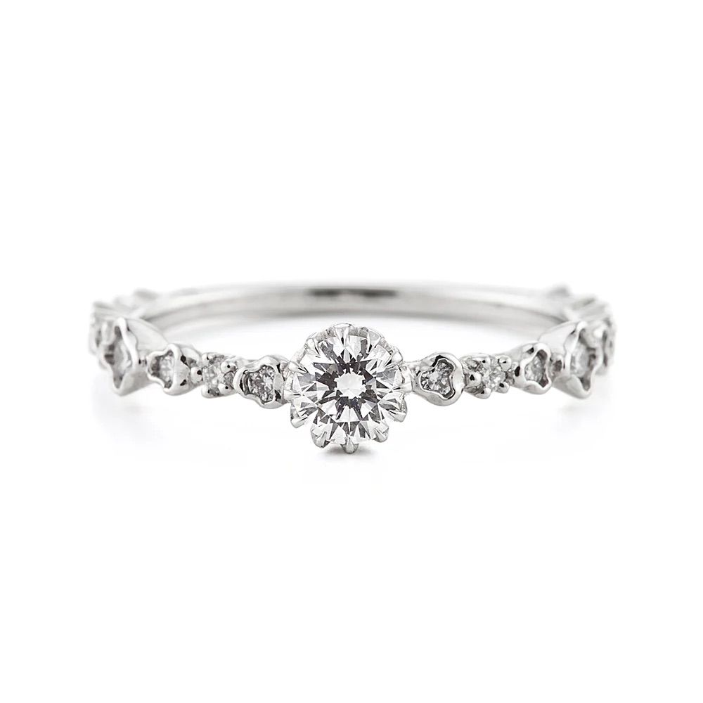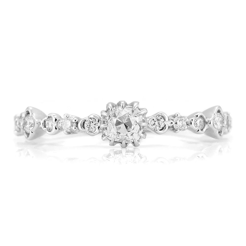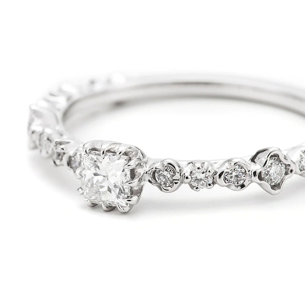 指輪全体も、デザインの違うダイヤモンドが並んだ可愛らしいエタニティリング。