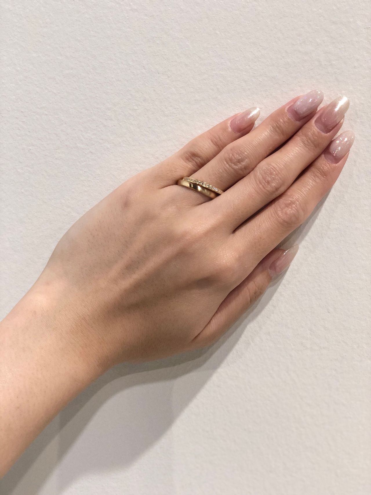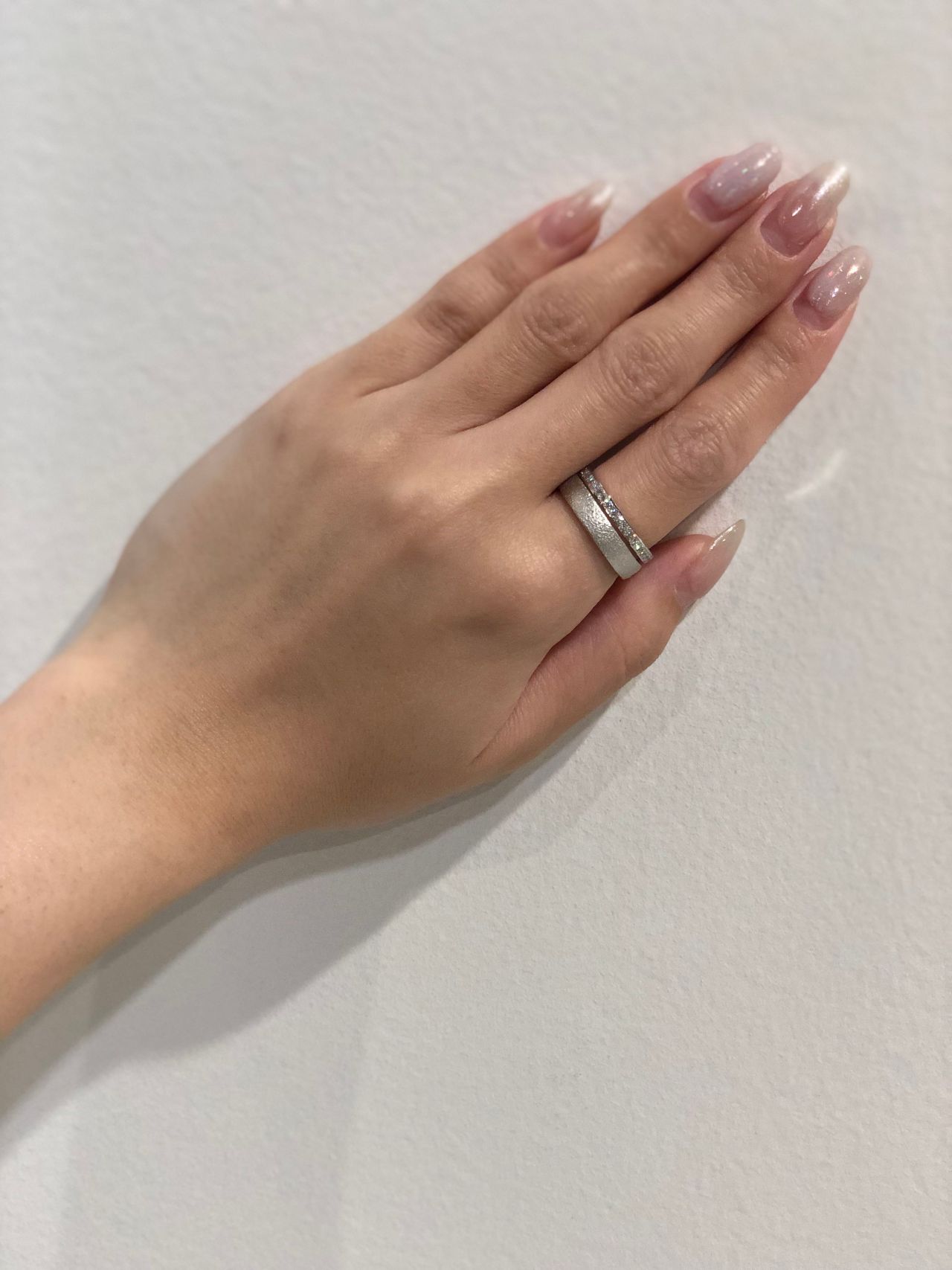 エタニティリングを重ねることで柔らかい印象になり、日常使いもしやすくなります☺