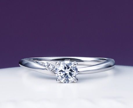 流れるようなメレダイヤモンドが入った、優しい印象の「木洩日」というご婚約指輪。