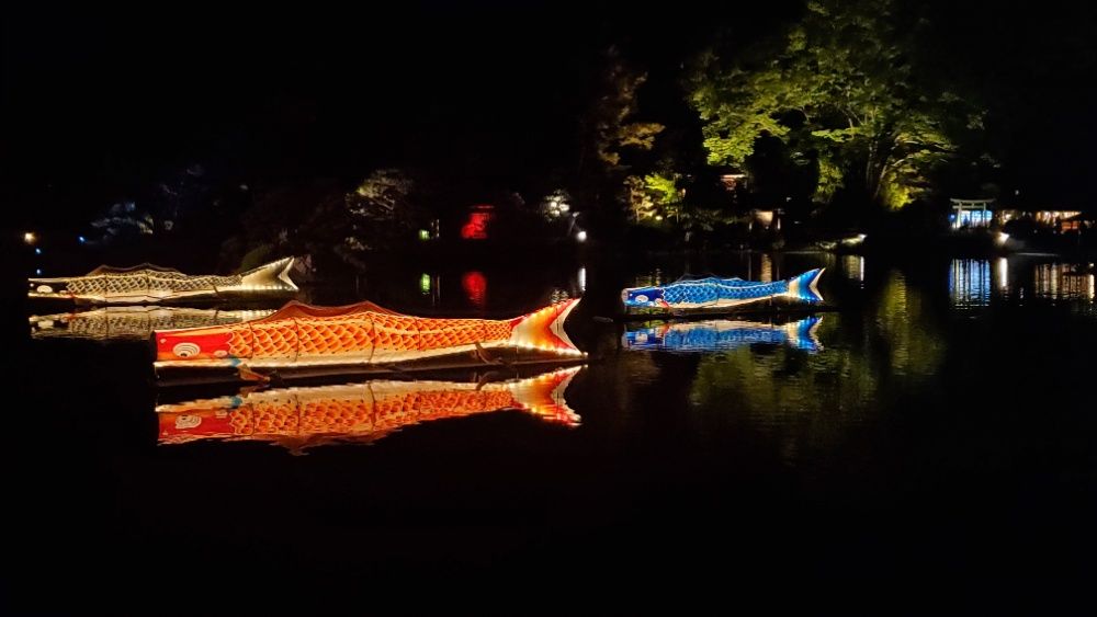 後楽園内では、春の鯉泳ぎのライトアップや周辺には、