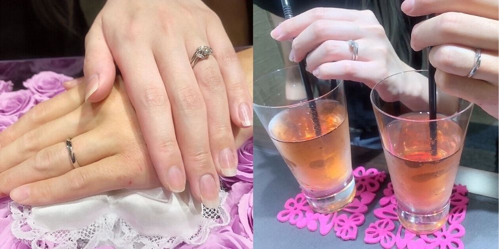 そして、先日ご結婚指輪の納品時にお二人様の指輪着用お写真を