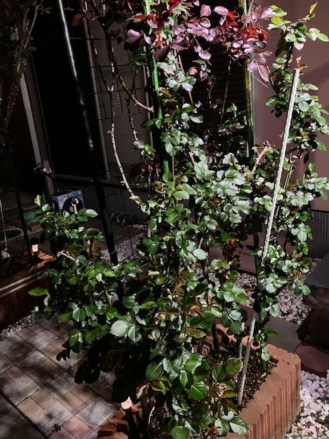 桜に負けじと我が家のバラも!まだ咲いてはいませんが新葉が次々と出てまいりました。