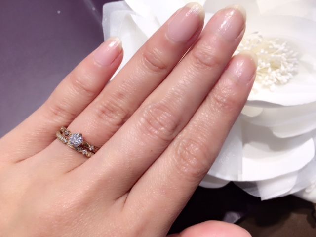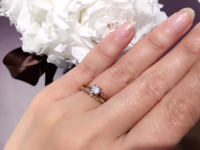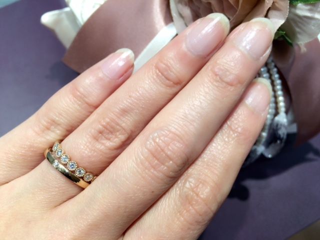 ミル打ちの大きさや形にまでこだわっていて、とっても女性らしくて可愛らしリングです。