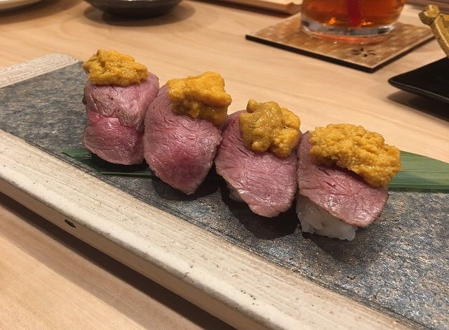雲丹がのった黒毛和牛の炙り肉寿司♡ とっても美味しかったです♡
