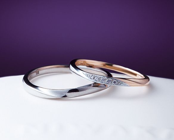 変化する情景を表現し、今後過ごす人生を色に重ねた様子を表現した結婚指輪です!