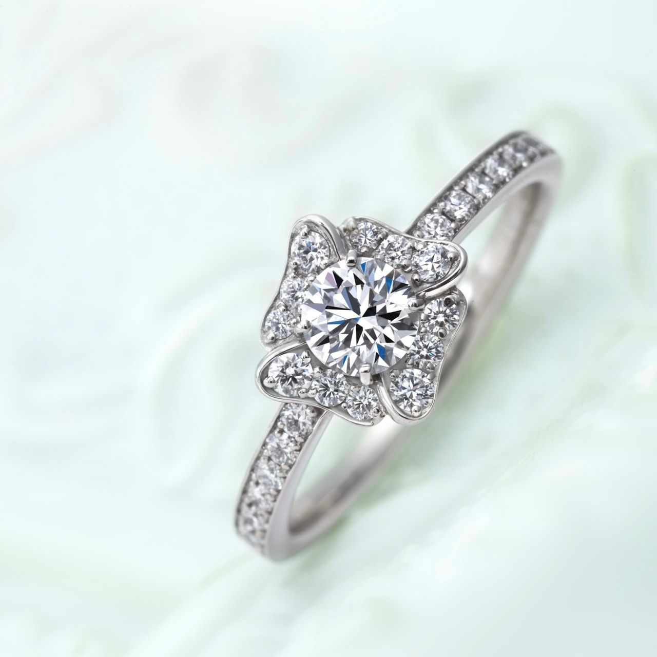 重なるクローバーの葉を優雅に表現したエンゲージリング