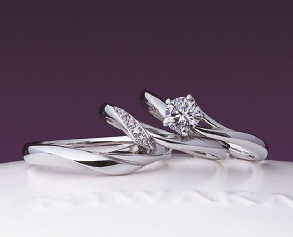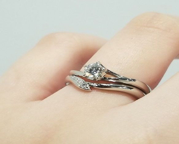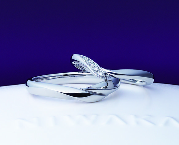女性のマリッジリングはひとひらの花びらをメレダイアモンドで表現しており、