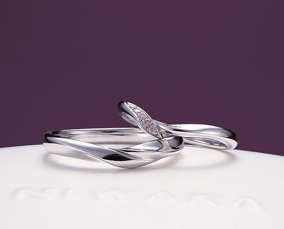 男性のマリッジリングは花を支える桜の幹を表現しており、桜の花を、奥様を
