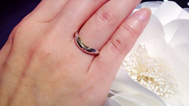 女性のリングにはゴールドで満ちてゆく月を表現しております。