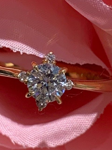 こちらのリングもセンターダイヤモンドの上下左右に4つのメレダイヤをセッティング。