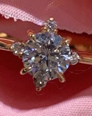 センターダイヤを四方から囲むようなメレダイヤのセッティングは意外とないデザインです。