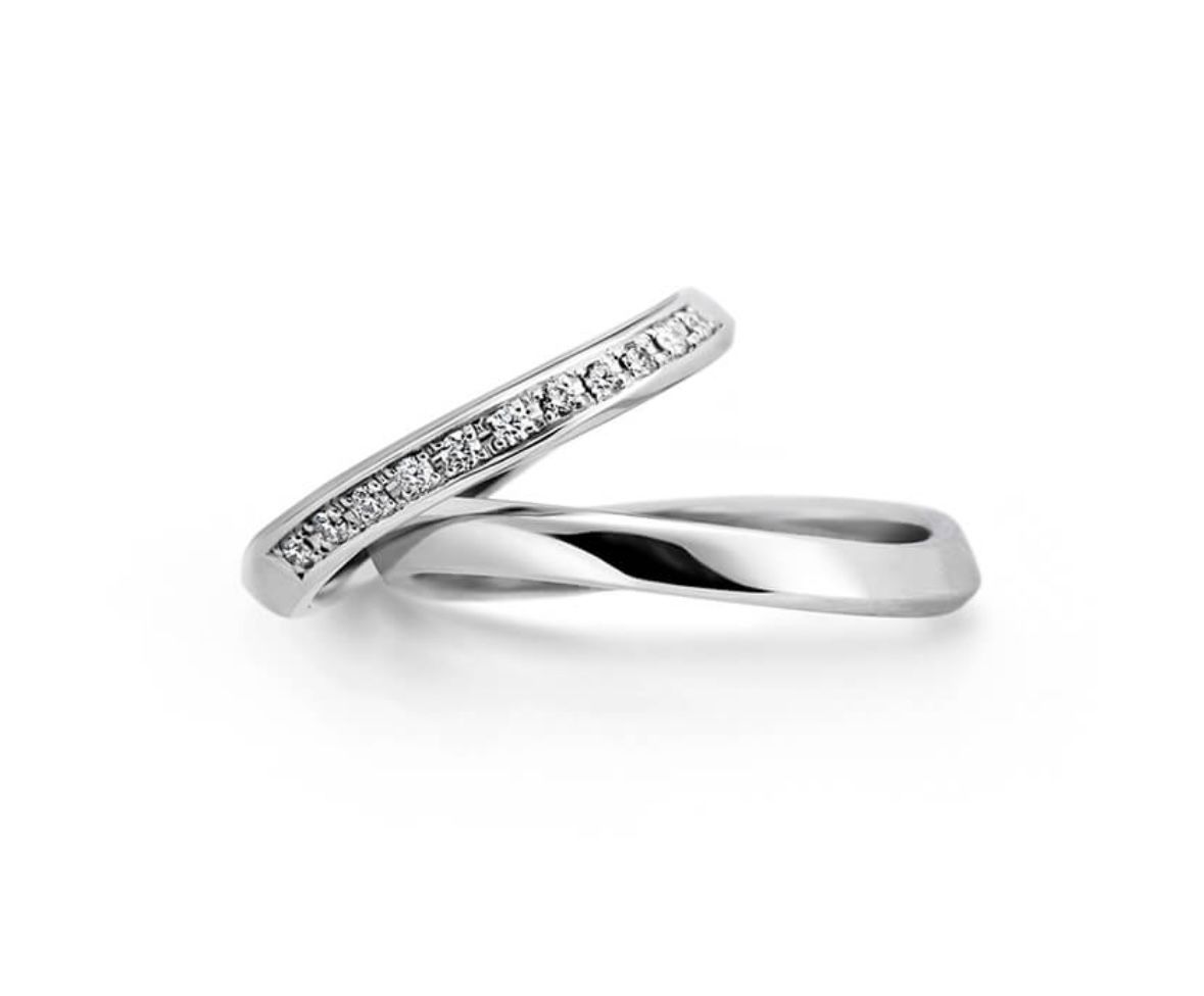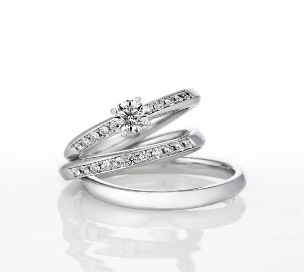 同じデザインの結婚指輪もあり、重ね合わせると