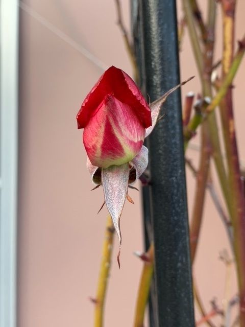 そんなわけで、ついに!冬眠をしていた私のバラの蕾が、少しずつ開きだしました!
