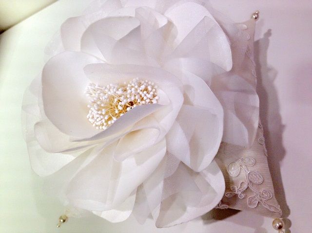 結婚式の際に、結婚指輪の交換まで指輪を置いておくためのリングクッションの事です