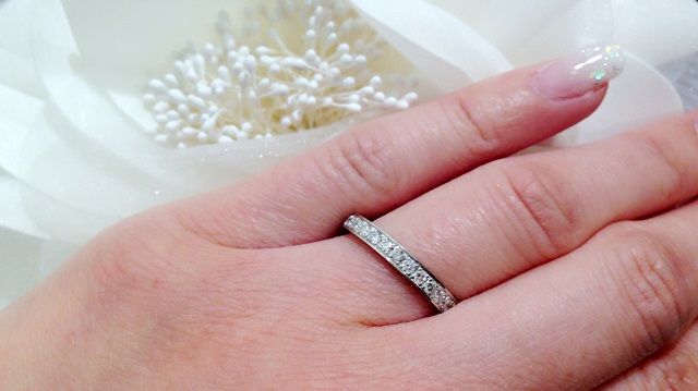 正面から見ていただいても分かるように指に沿ってダイヤモンドがふんだんに使われている為、1本つけていただくだけでもゴージャスなのです・・・♡