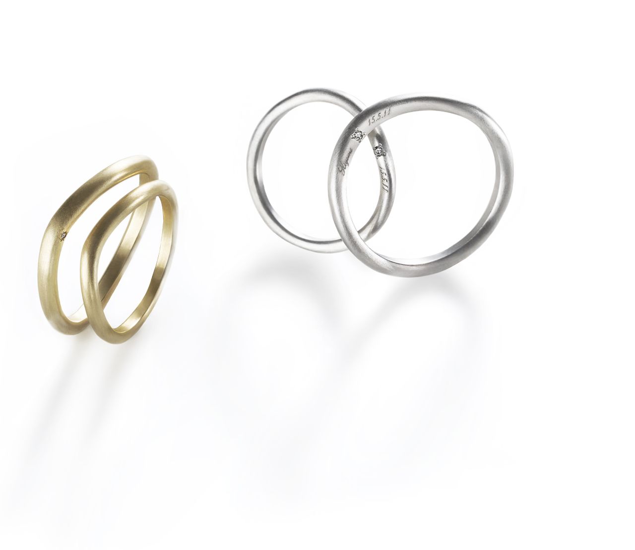 ストレートデザインが多いアーカーのマリッジリングの中でも珍しくV字のリングです。