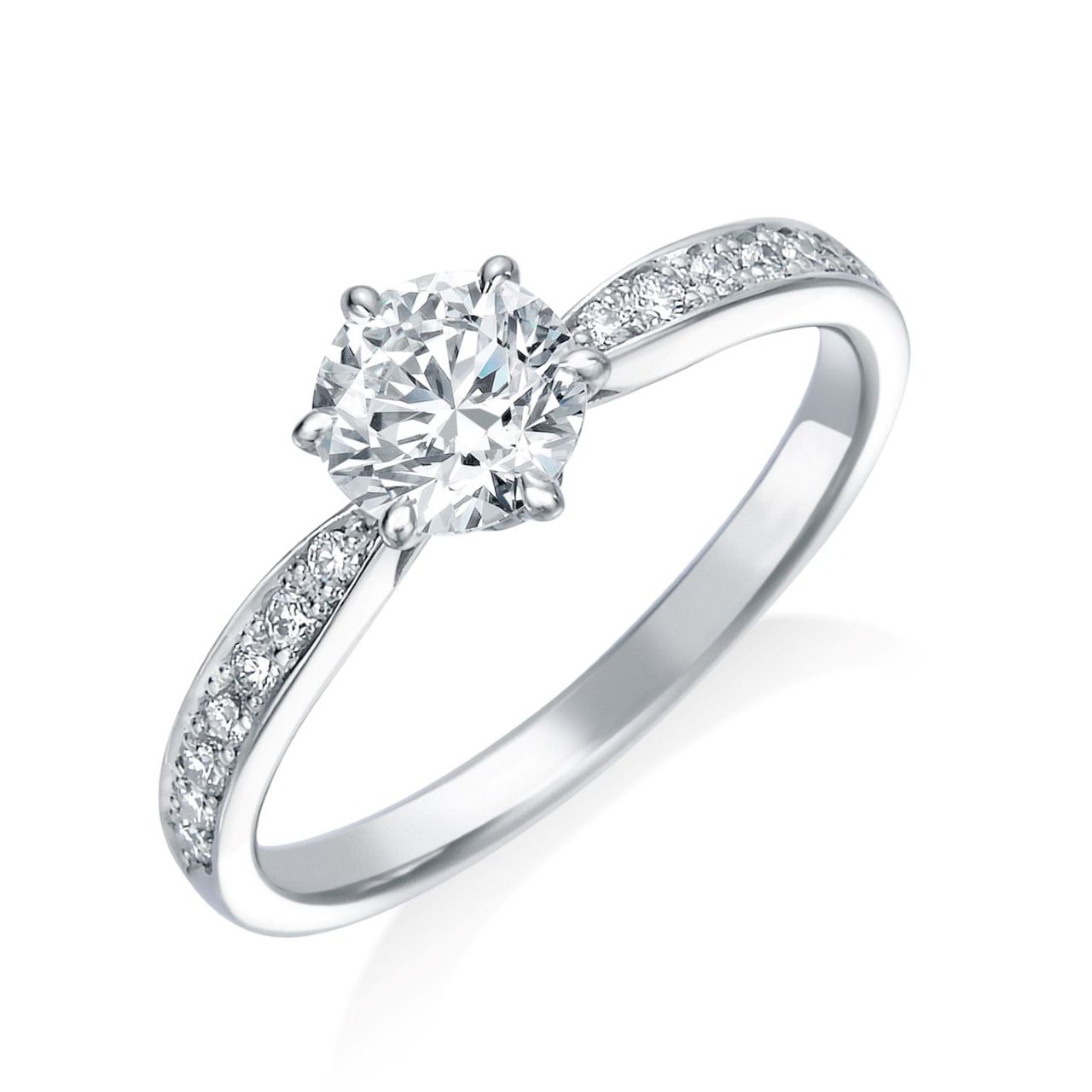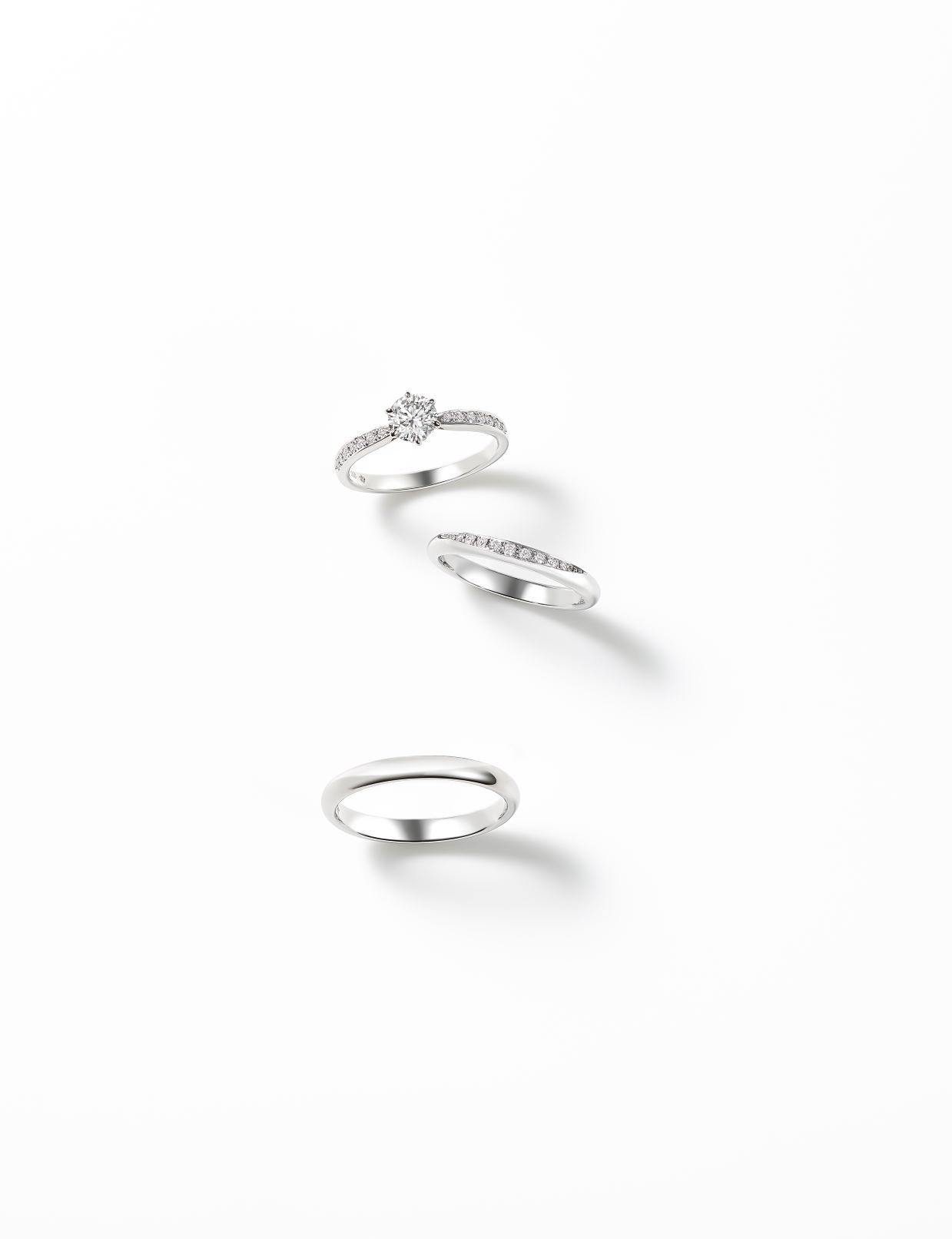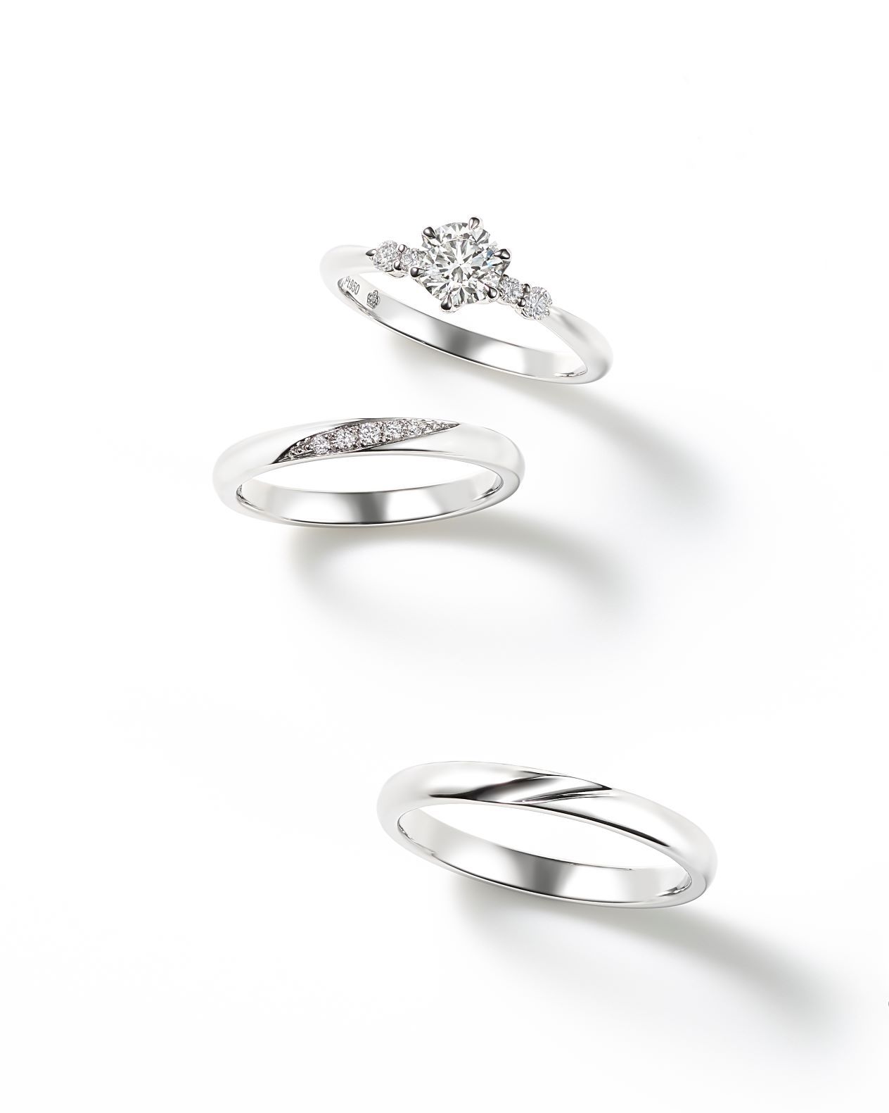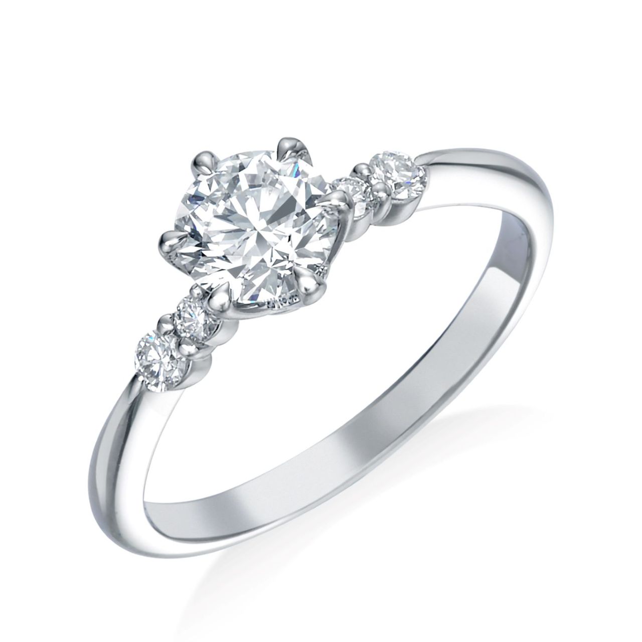 センターダイヤモンドのサイドには、大小2つのダイヤモンドをセッティング。