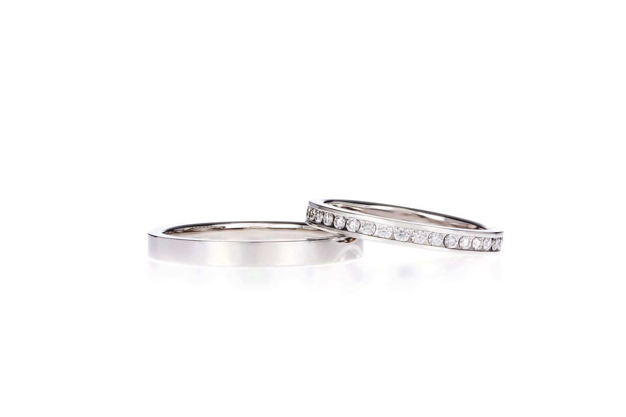 細身と一言で言っても何種類かあり、ダイヤ無し、ハーフエタニティ、フルエタニティもできます。
