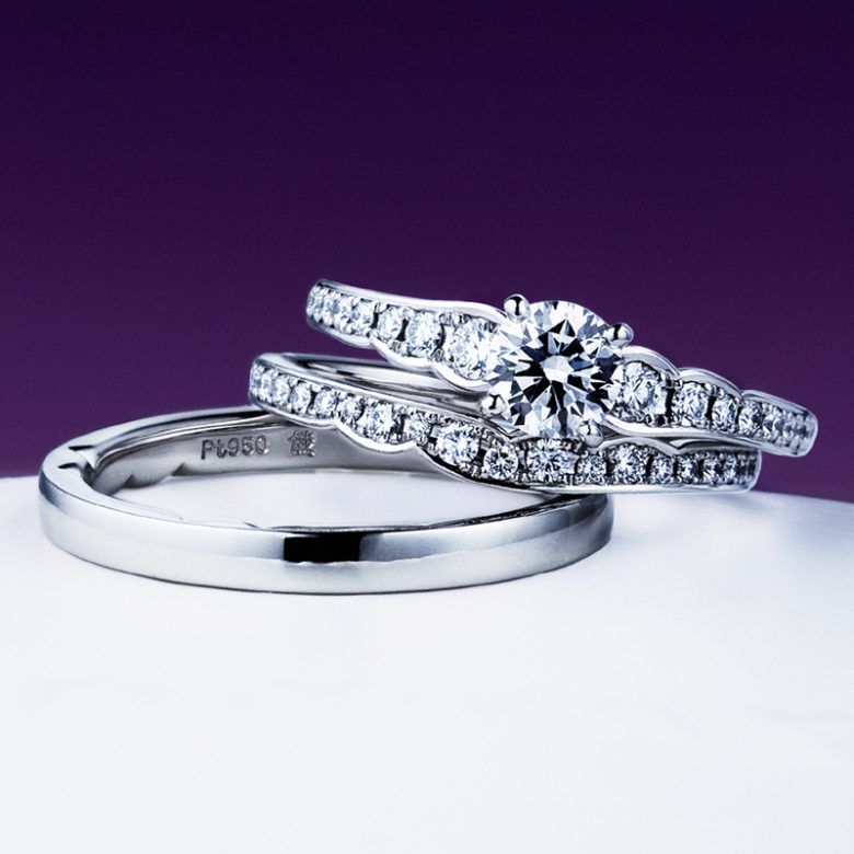 婚約指輪と結婚指輪を重ねると一層華やかにダイヤモンドが輝き