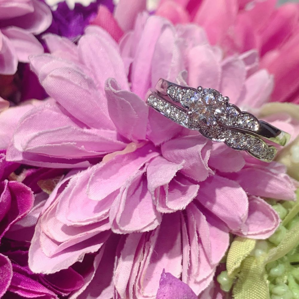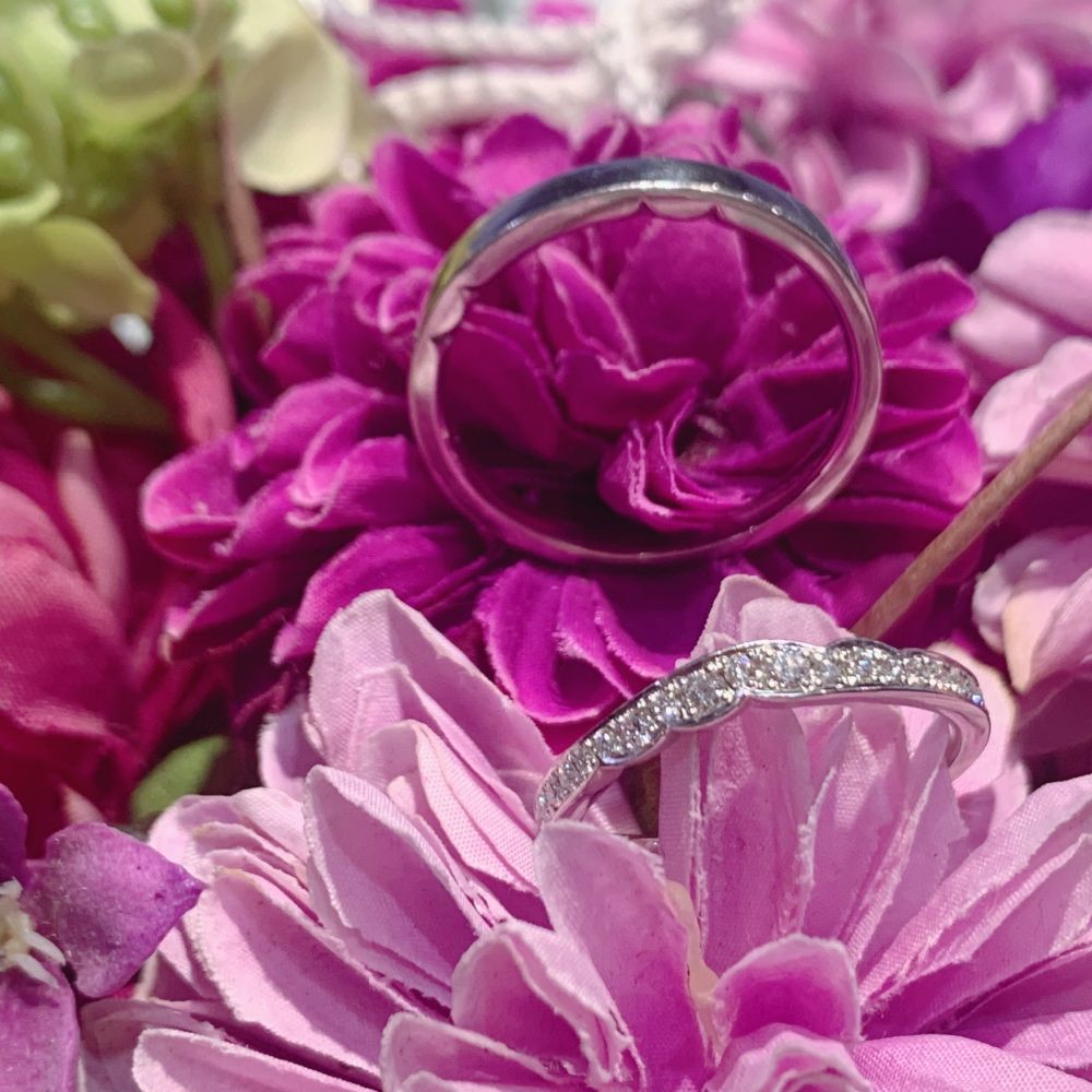 美しく咲き誇る花をモチーフにしたデザインの結婚指輪は