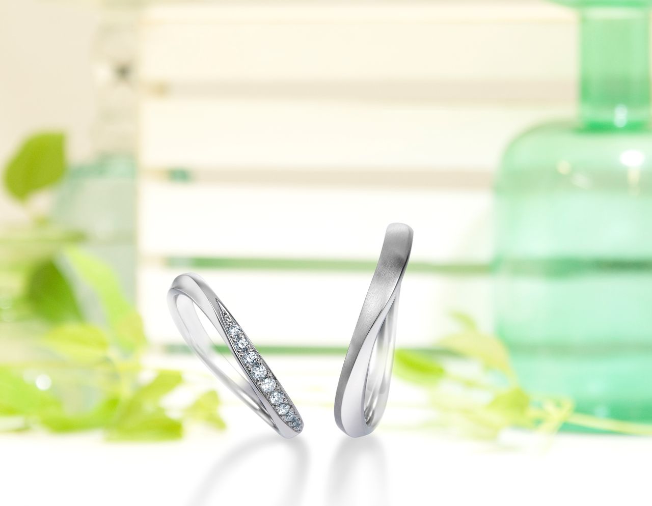 どちらも頬を撫でるような風をイメージした、緩やかなカーブが特徴のリングです。