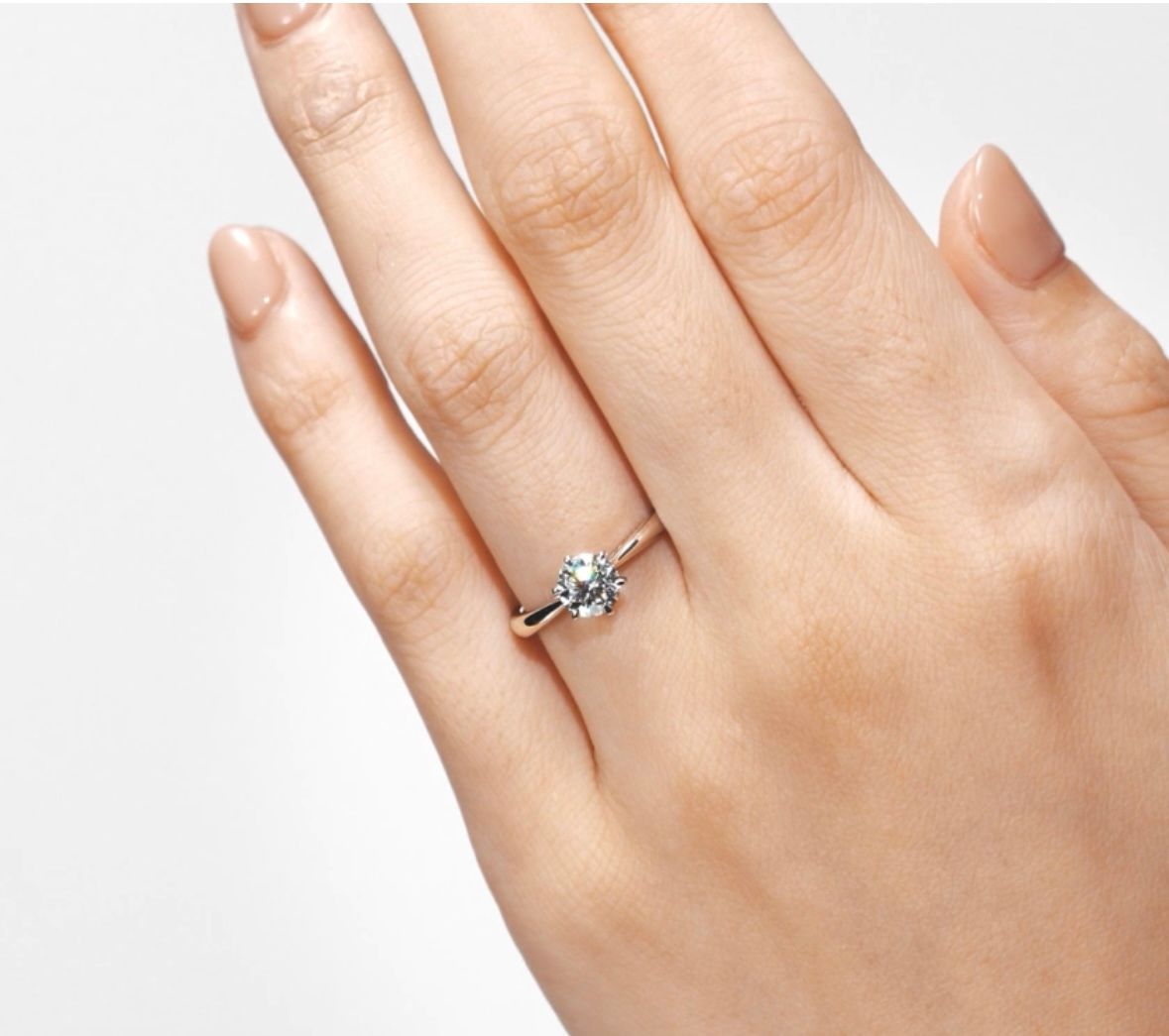 全周に繊細な透かしが入った高めの石座がダイヤモンドの輝きをより彩ります。