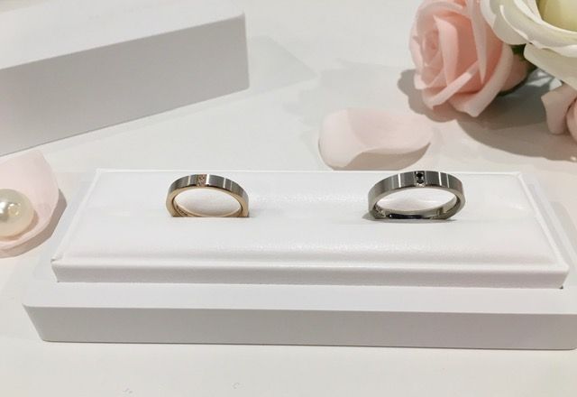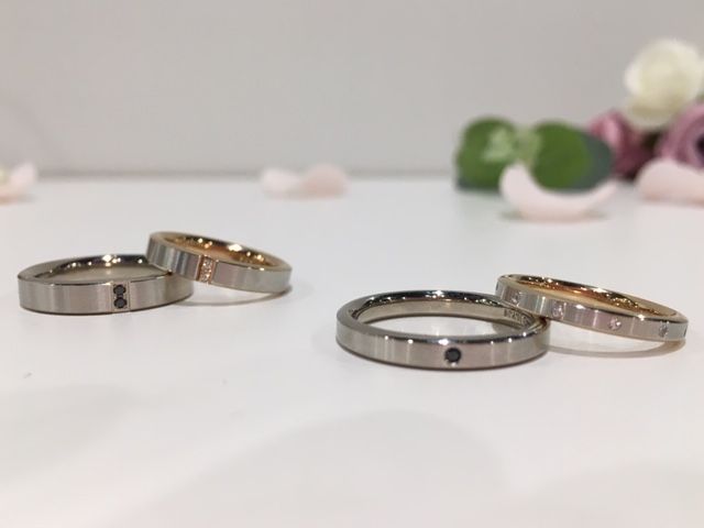 男性様のリングにはかっこいいブラックダイヤモンドが入っています!