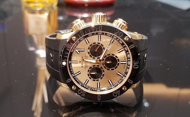 ケース:316LステンレススティールイエローゴールドPVD・サファイアクリスタル(無反射コーティング)・ハイテックセラミックベゼル(逆回転ン防止)