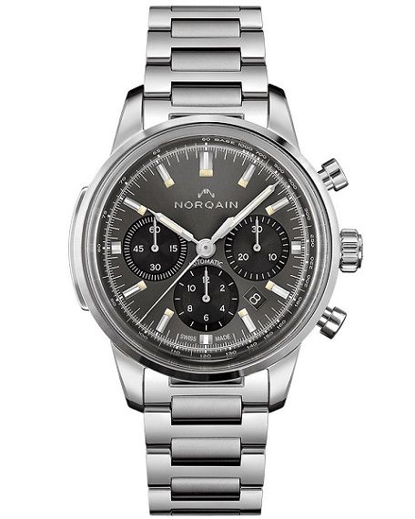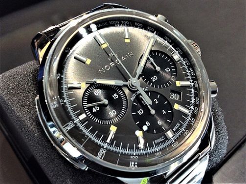 グレー&ブラックカラーの文字盤はクールな印象を与えるだけでなく、
