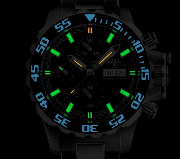 セラミックベゼルにはルミノバ夜光を塗布。