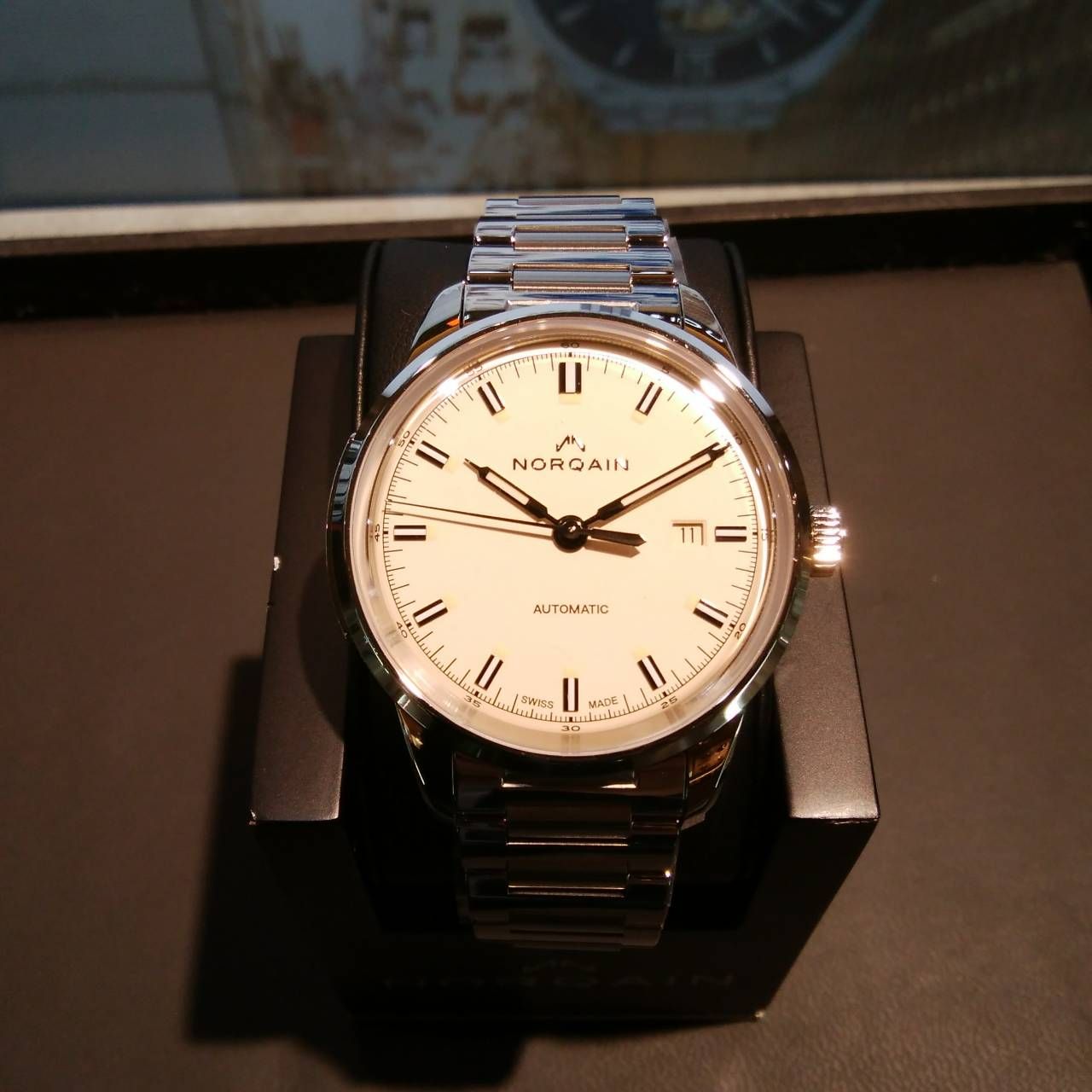 白文字盤でビジネスシーンにも使えます(^^♪