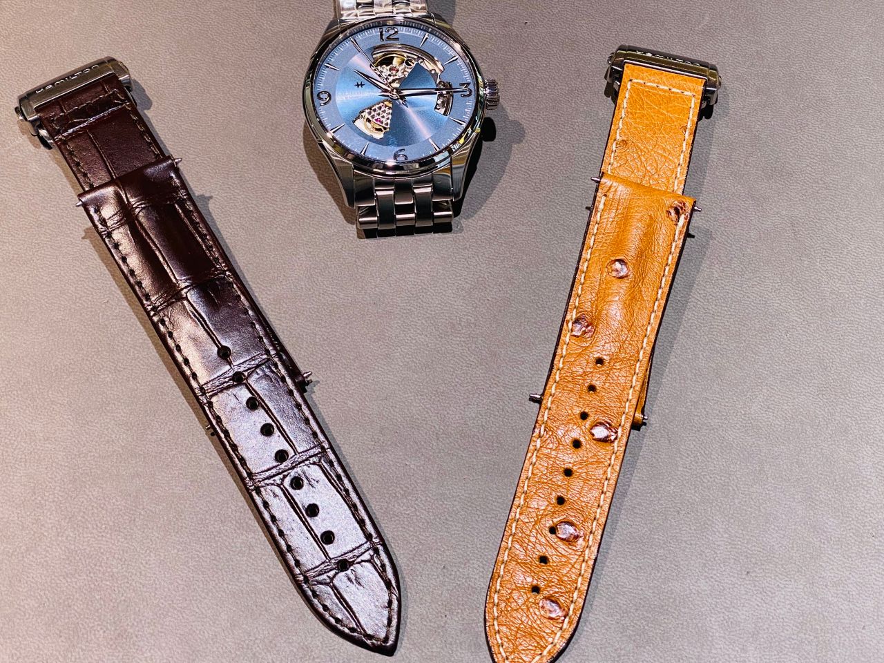 レザータイプもございますので季節が変わりましたら交換する事で