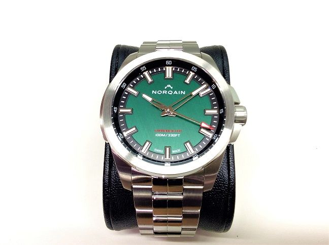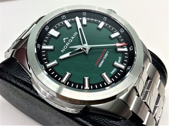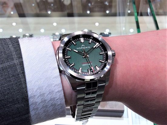 フォレストグリーンカラーの文字盤が非常に特徴的なモデル。
