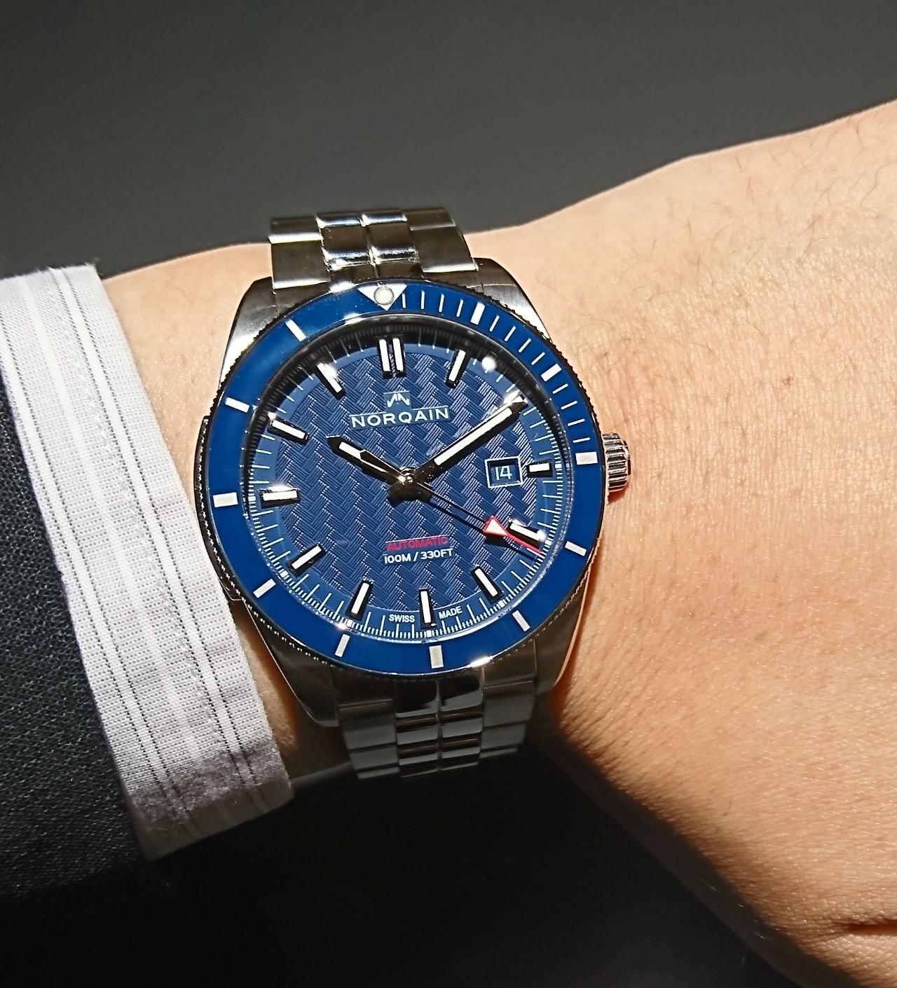 青色のカーボン調文字盤とベゼルが爽やかで春らしいですね!