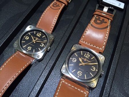 以前発売になっておりますBR03ゴールデンヘリテージ(写真 右)はケースサイズが42MMでした。