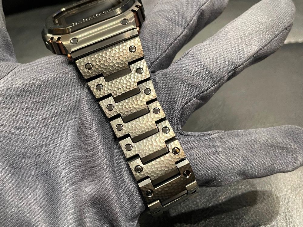 ベゼル・ブレスレットには、手作業で鎚目を打ち込んだ鎚起を採用しています。