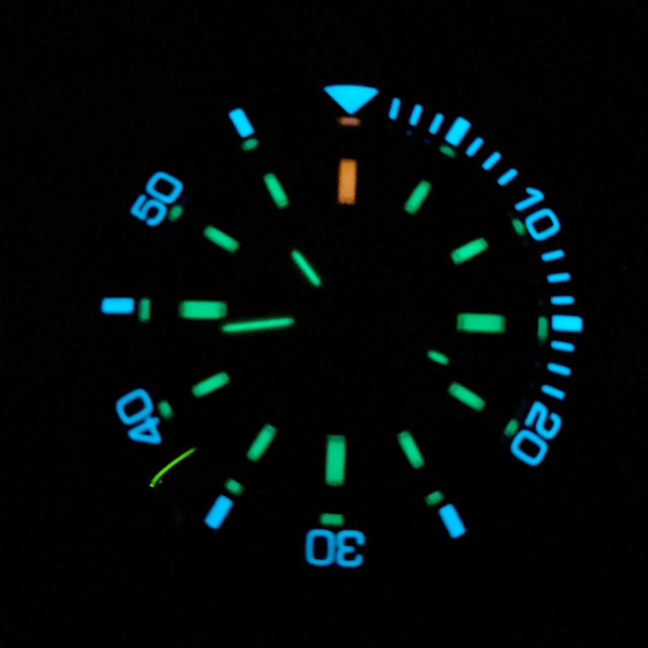 インデックス・時分針にはマイクロガスライト、ベゼル部分にも夜光を施しています