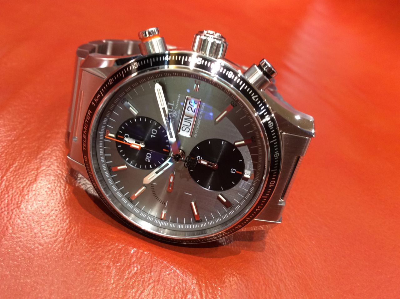 実は、光が当たるとキラッと光るグレーの文字盤なんです!