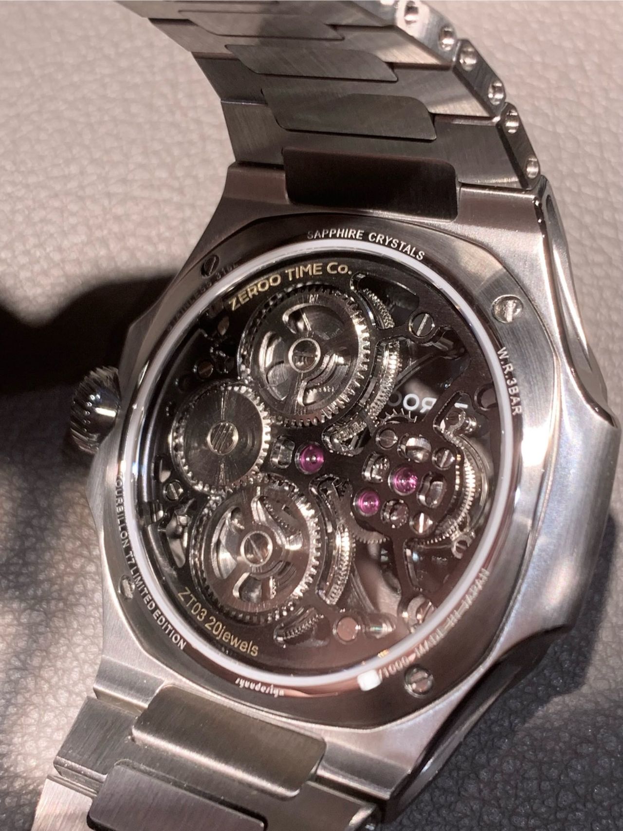 昨今はフルスケルトンの時計も多くなりましたが、向こう側がこんなにも見えてしまうほどの透け感はあまりないですね。