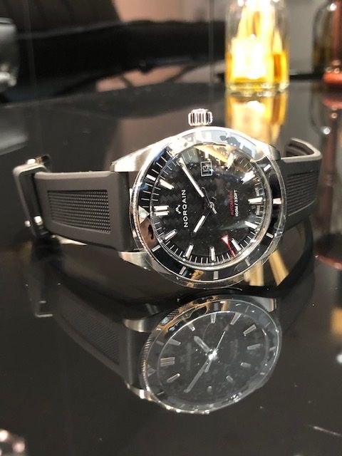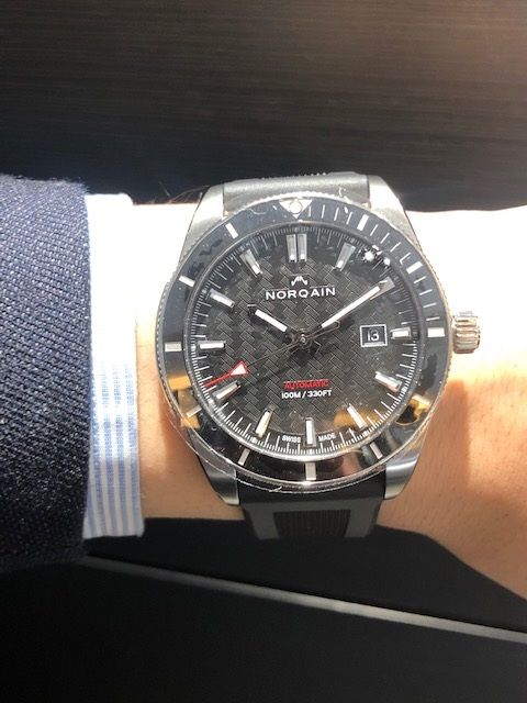 文字盤にはNORQAINのロゴパターンを施しております。