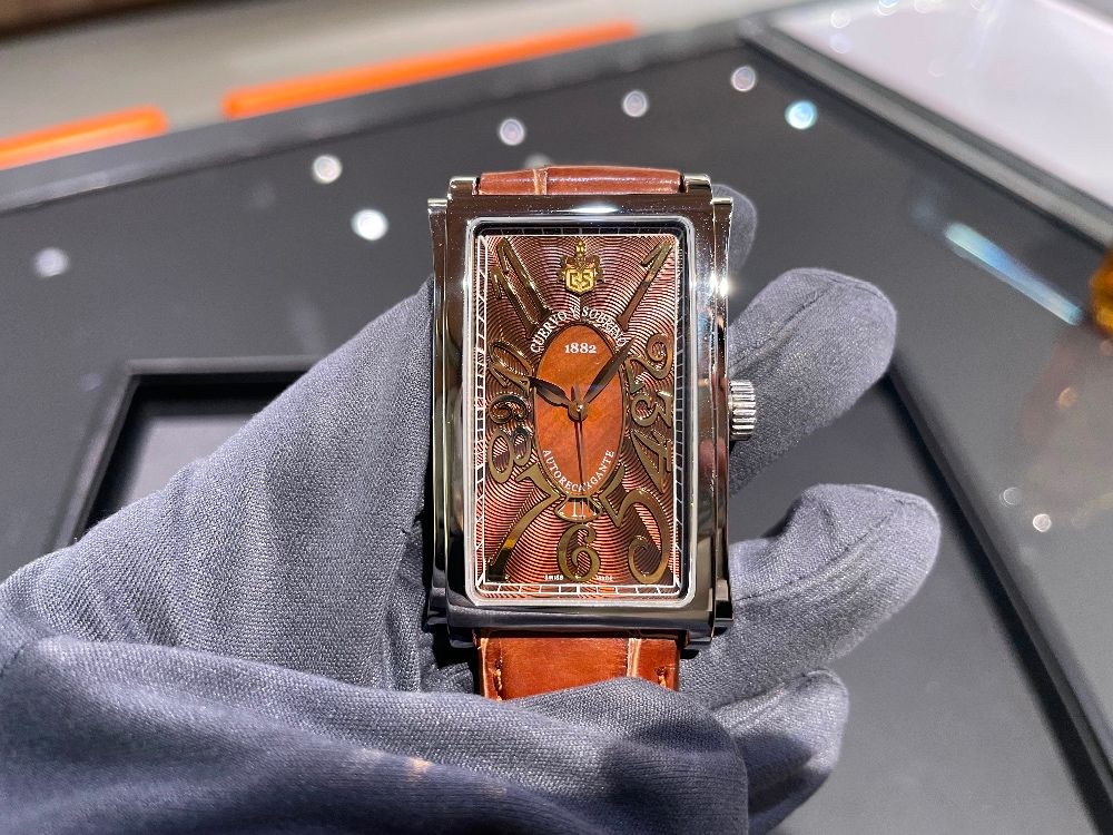 ダイヤルには、センターに配されたマザー・オブ・パールと、その周辺のギョーシェ模様の