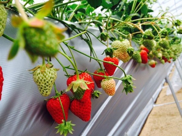 一面に緑が広がるいちご畑が印象的で美しかったです!!