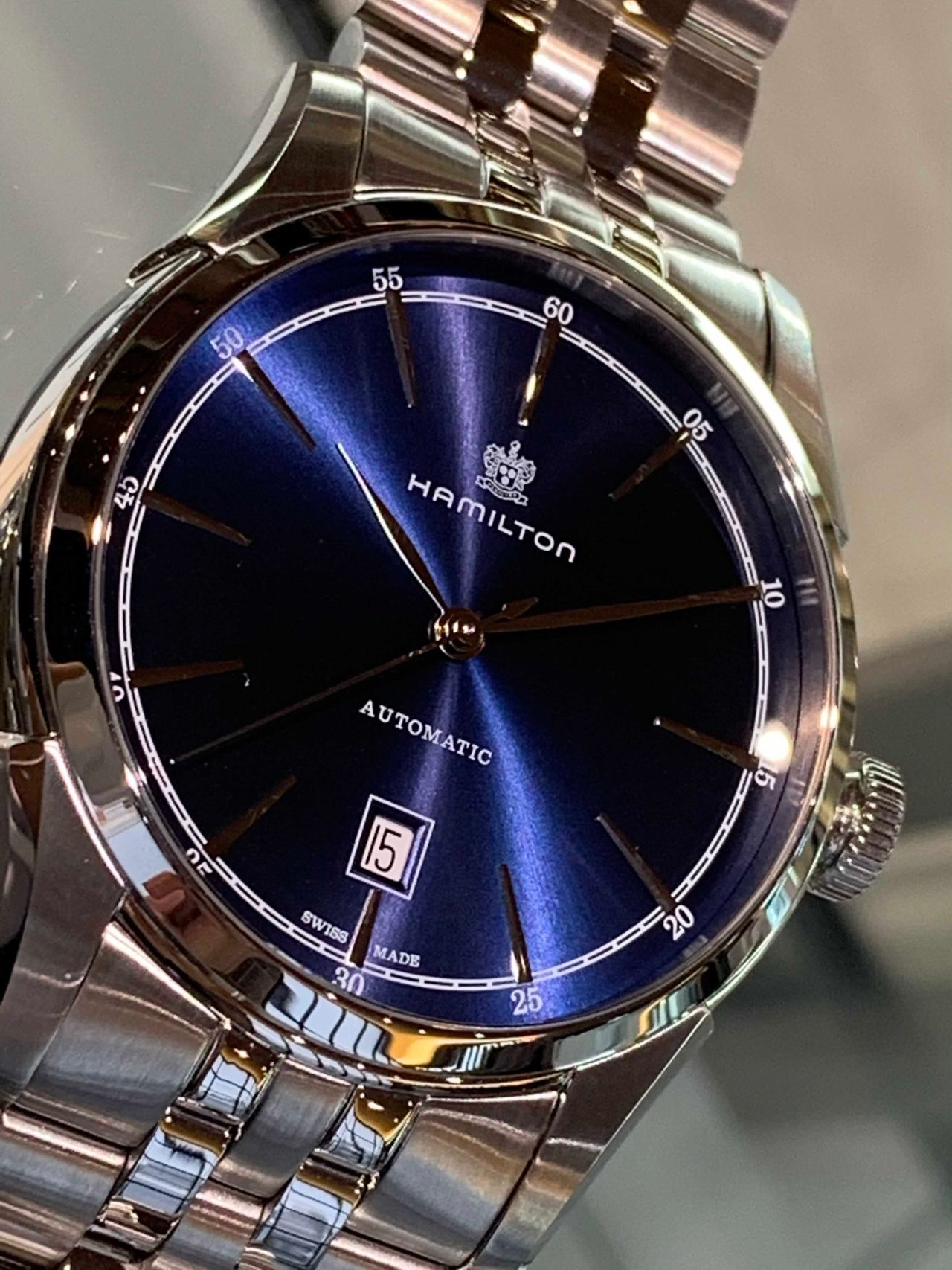 文字盤はバーインデックスの3針ですので