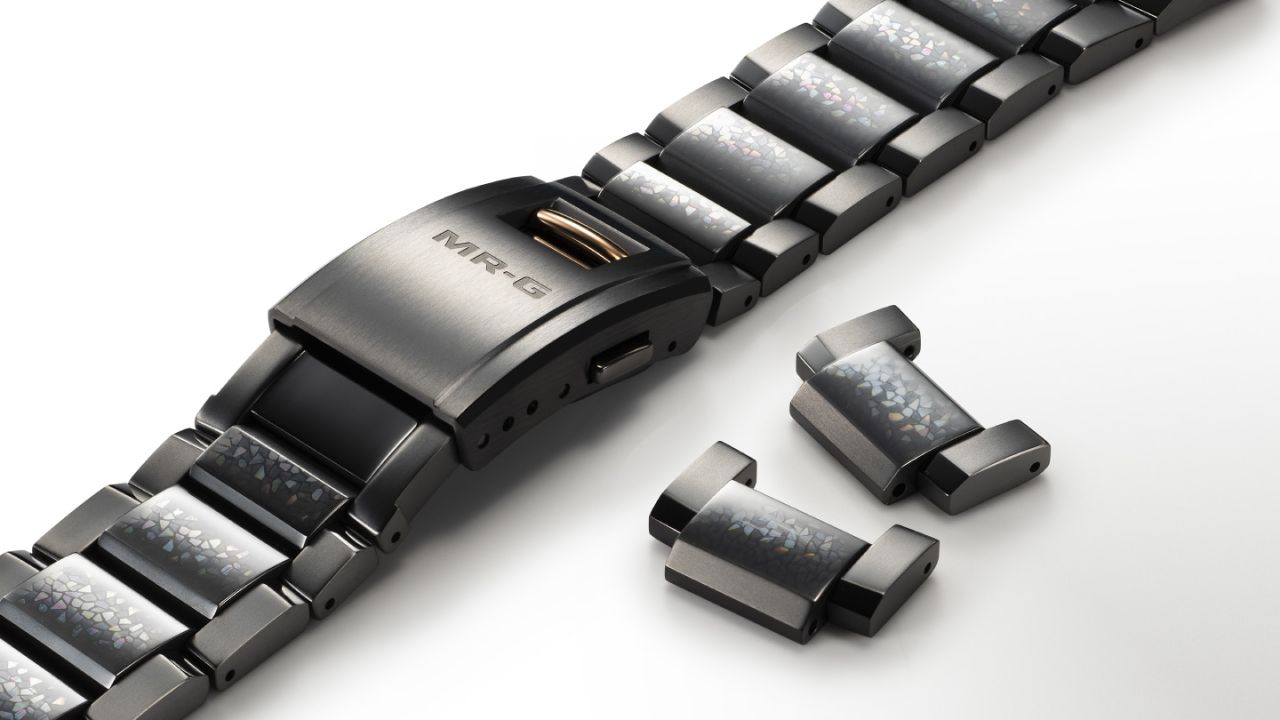 バンドは、伝統工芸士・野村守氏が、青貝鞘に採用されている青貝の意匠を用いたテクスチャーをあしらっています。