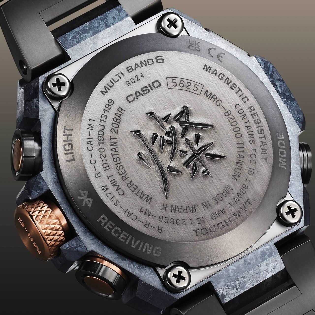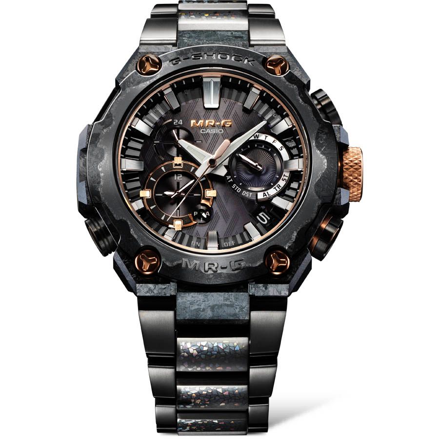 独特の紋様が浮かぶ再結晶化ハイブリッドチタンベゼルは、64チタンと純チタンを積層し